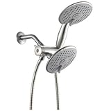 Ana Bath Shower Combo System gives you the easiest way to upgrade your shower system without any tool. No power drill, no screwdrivers, just your hands. With the 6 inch 3 function handheld shower and shower head, you can feel a whole new fantastic shower experience with our water saving shower technology which is another way to save your water bill. The whole package includes HS3232 (3-function 6" handheld shower with saturating spray, massage spray, saturating spray & massage spray. Flow rate: 1.63 GPM (Gallon per Minute) / 6.16 LPM (Liter per Minute) @ 80psi. *Flow rate < 2.5 GPM / 9.45 LPM @ water pressure of 80 psi meets CSA Standard. *Flow rate < 2 GPM / 7.56 LPM @ water pressure of 80 psi meets WaterSense standard.), RS3232 (3-function 6" shower head with saturating spray, massage spray, saturating spray & massage spray. Flow rate: 2.18 GPM / 8.24 LPM @ 80psi), DT1021 (Big 3-way diverter mount. US Patent #: US7,299,510B2; UK Patent #: 0512056.3), S21542 (60" stainless steel shower hose. Double hooked, Ø0.55", anti-twist brass conical nut & brass hex nut) * PVD Brushed Nickel Finish for Whole Set (Handheld shower, showerhead, 3-way diverter mount, and shower hose) (The additional PVD coating process provides better corrosion resistance, more uniform deposit, brighter, harder, and smoother surface, and is more environmental protected-no harmful chemicals to deposit of.) * Lifetime Warranty Read more