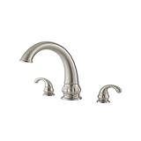 The Price Pfister 806-DK11 Treviso Roman Tub Faucet, finished in Brushed Nickel, features a unique, fresh design with Italian influences. The sculpted detail of the ornate lever handles and matching spout coordinate the bath, from lavatory faucet to Roman tub. The traditional styled spout is longer and taller than most, for practicality with a classic European look. Requires a three hole install. Read more
