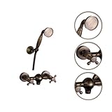 This vintage designed wall mount tub faucet features a color matched, fully functional hand shower and double beautiful cross handles. The faucet mounting hole distance is 6" and it can easily be mounted on to your wall easily just with some plumbing experience.The antique brass finish gives the faucet style and sophistication that never be out of style and gives it adaptable nature to many types of décors .