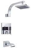 Danze D500044T Sirius™ Single Control Tub & Shower Trim, CromeAlthough a relatively new name, Danze is a brand of one of the world's largest manufacturers of brass faucets and accessories, Globe Union Industrial Corporation. Danze invites you to examine their products carefully to appreciate the high levels of craftsmanship that are revealed by the fit, finish and design of the products. They take great pride in their products, and know they will give you years of beauty and trouble-free service.Anti-scald Pressure Balance device keeps water temperature within +/-3;F (+/-1.5;C). Temperature limit device. 6" thin profile brass showerhead and all brass 13" shower arm. Built-in integral shut-off valves included. Includes cast brass tub spout.Danze D500044T Sirius™ Single Control Tub & Shower Trim, Chrome Features:; Single handle with custom brass 6" thin profile showerhead; All brass 15" shower arm; Diverter on valve (Tub & Shower only); Back to back installation capabilities; Trim Only (VALVE required and listed below) Read more
