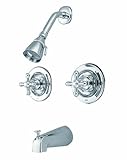 Kingston Brass KB661AX Vintage Twin Handles Pressure Balanced Tub & Shower Faucet, ChromeSolid brass water way construction, Premium color finish resist tarnishing and corrosion, 2.5 GPM / 9.5 LPM at 60 PSI, 6" reach Shower Arm, 1/4 turn washerless cartridge , 1/2" IPS Inlets, Pressure Balance Valve, Temperature Check Stop, Ten year limited warranty.Kingston Brass KB661AX Vintage Twin Handles Pressure Balanced Tub & Shower Faucet, Chrome Features:; Chrome Finish; 2.5 GPM (9.5 LPM) Max @ 80 PSI on Shower Head; Kingston Brass KB661AX Tub and Shower Faucet Pressure Balance with Volume Control Polished Chrome ; Pressure Balanced with Volume Control; Metal Cross Handle; Complete Set Read more