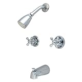 Kingston Brass KB241AX Twin Handle Tub and Shower Faucet with Decor Cross Handle, Polished Chrome
