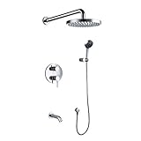 Contemporary Tub Shower Faucet with 8 inch Shower Head + Hand Shower